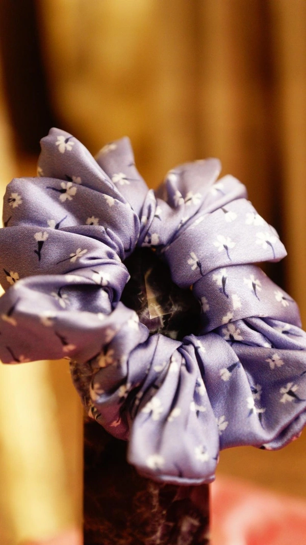 Flower Printed xl Japanese Satin Silk Scrunchie
